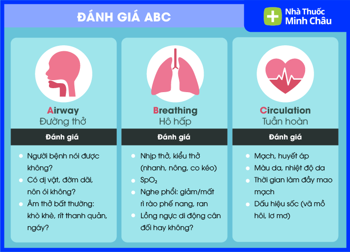 Đánh giá ABC (Airway - Breathing - Circulation): Đảm bảo đường thở thông thoáng.
