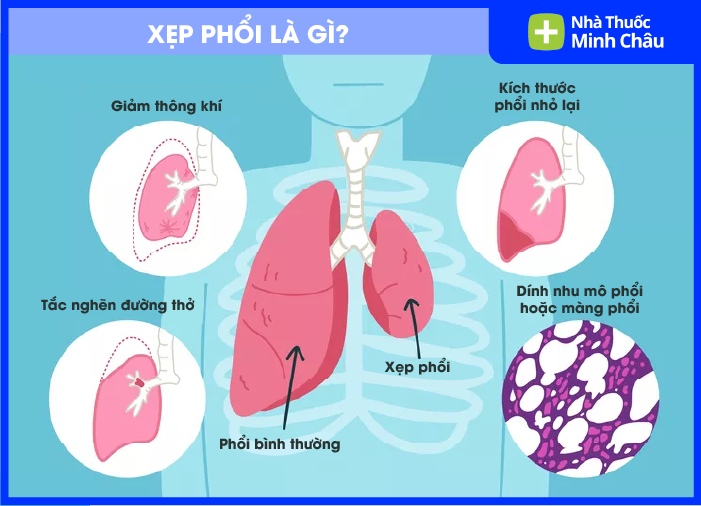 Xẹp phổi (Atelectasis) là tình trạng một phần hoặc toàn bộ phế nang (túi khí nhỏ) trong phổi bị xẹp xuống hoàn toàn, khiến không khí không thể đi vào, làm giảm nghiêm trọng diện tích bề mặt trao đổi khí.